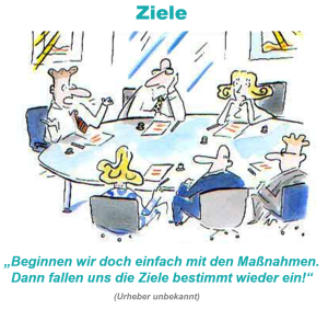 Oftmals werden in Unternehmen Maßnahmen losgetreten, ohne überhaupt konkrete Zielvorstellungen zu haben und ohne dass die Ziele SMART definiert wurden. Ziele der Beteiligten werden möglicherweise gar nicht berücksichtigt. Dies führt teilweise zu Konflikten und Widerständen.